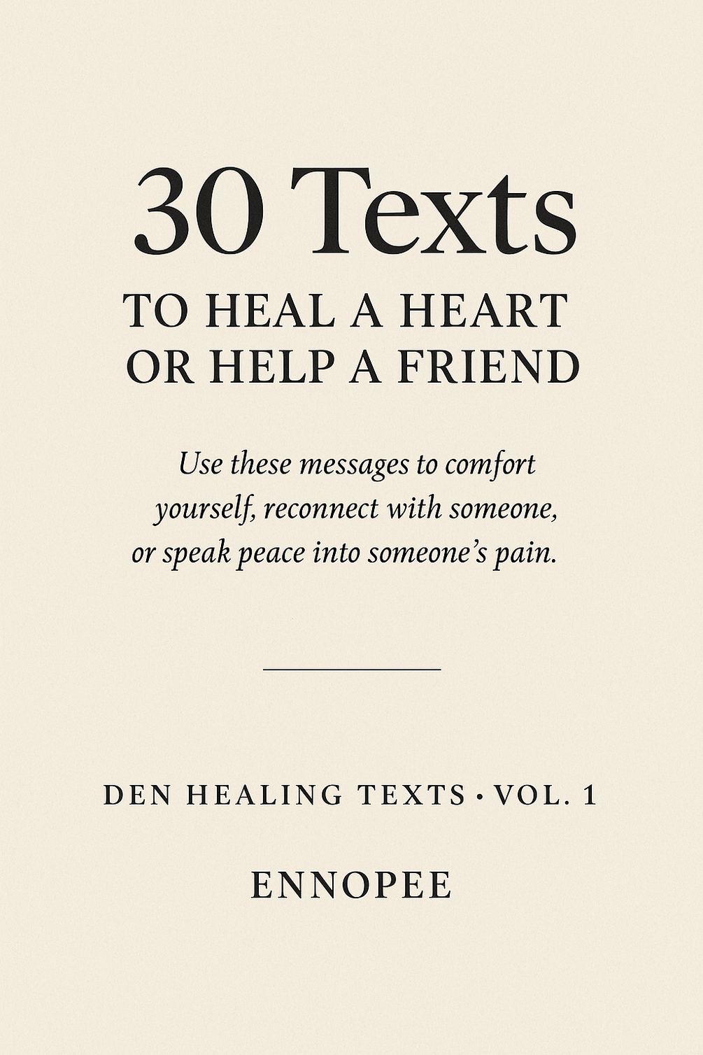 This is not just a list of texts. It’s a mirror for your pain, and a hand for your healing. Volume 1 gives you 30 raw, honest messages to help you: • Speak to your own brokenness • Comfort a hurting friend • Say what your ex never let you finish • Rebuild your worth in silence These are the words you wish someone sent you after the storm. Perfect for: ✔️ Messaging yourself at 2AM ✔️ Reconnecting with peace ✔️ Healing through stillness ✔️ Captioning real pain with quiet power ⸻ This pack is your reminder: You are not alone. You are not too broken. You are not done. We build in silence. We heal with fire. – ENNOPEE #HealingTexts #DenWhispers #TextTherapy